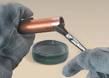 Ajusta la válvula del soplete hasta que la parte azul de la llama tenga de 1 a 2” de largo. Sostén la punta de la llama contra el centro del conector durante 5 segundos, hasta que la pasta para soldar empiece a despedir chispas continuamente.